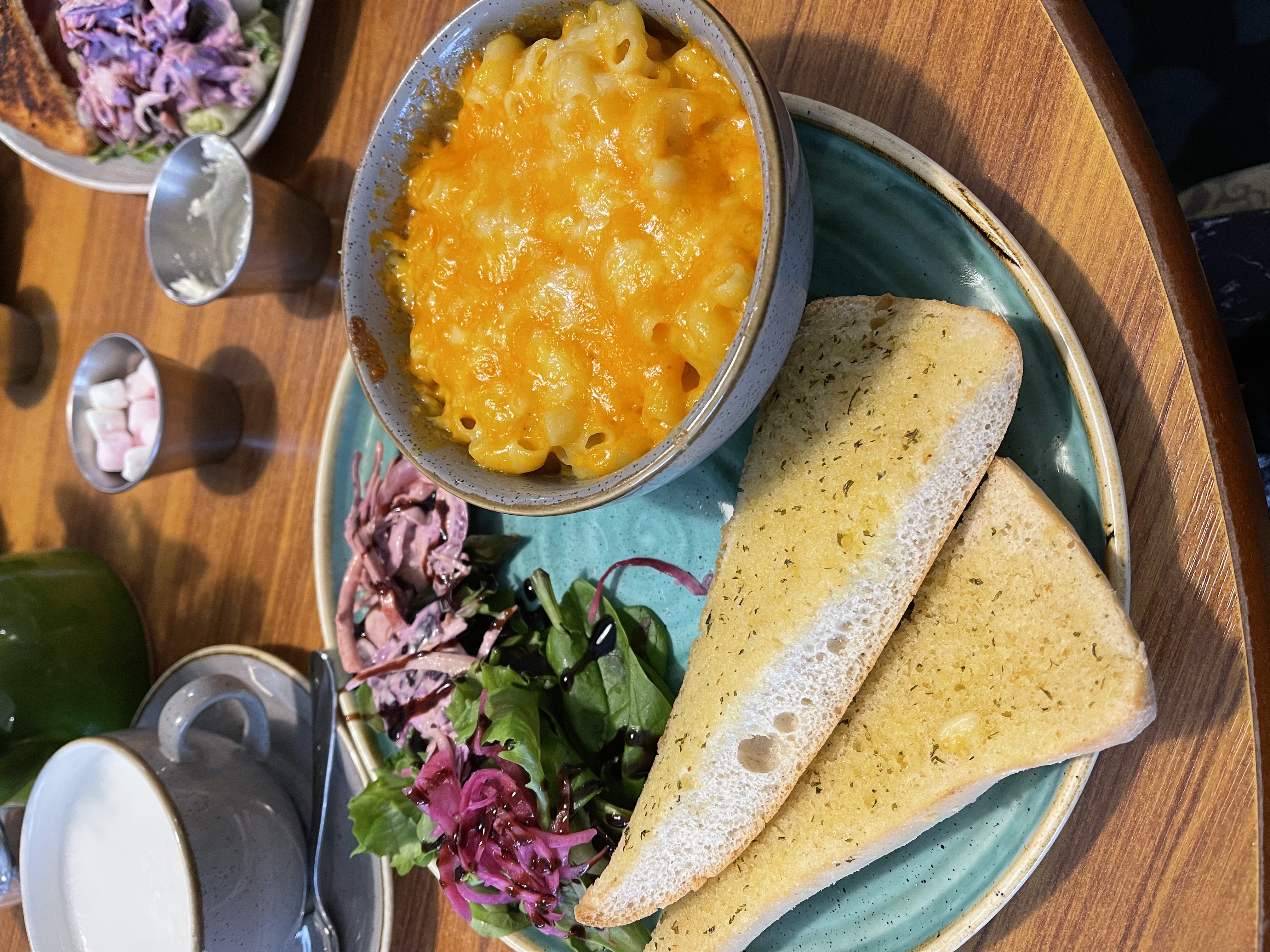 We opted to overlook the 1897 Coffee Shop in favour of something a little more substantial than refrigerated sandwiches and bottled drinks, and we’re delighted we did. We indulged in a ‘Wensleydale Mac and Five Cheese’ and the ‘Ultimate Wensleydale Creamery Toastie’, both oozing with a variety of cheeses. We also treated ourselves to that day’s drink special – butterscotch white hot chocolates – to warm ourselves up against the chilly snow scene outside. Every member of staff we met was incredibly welcoming, and for those looking to learn more about the process as well as enjoy the outcome, Wensleydale Creamery offer guided site tours too. The Wensleydale Creamery has a dog-friendly seating area in the outdoor section of the 1897 Coffee Shop, with panoramic views over the Dales, for those in need of a place to enjoy a cuppa and take the weight off their feet with their four-legged friends.