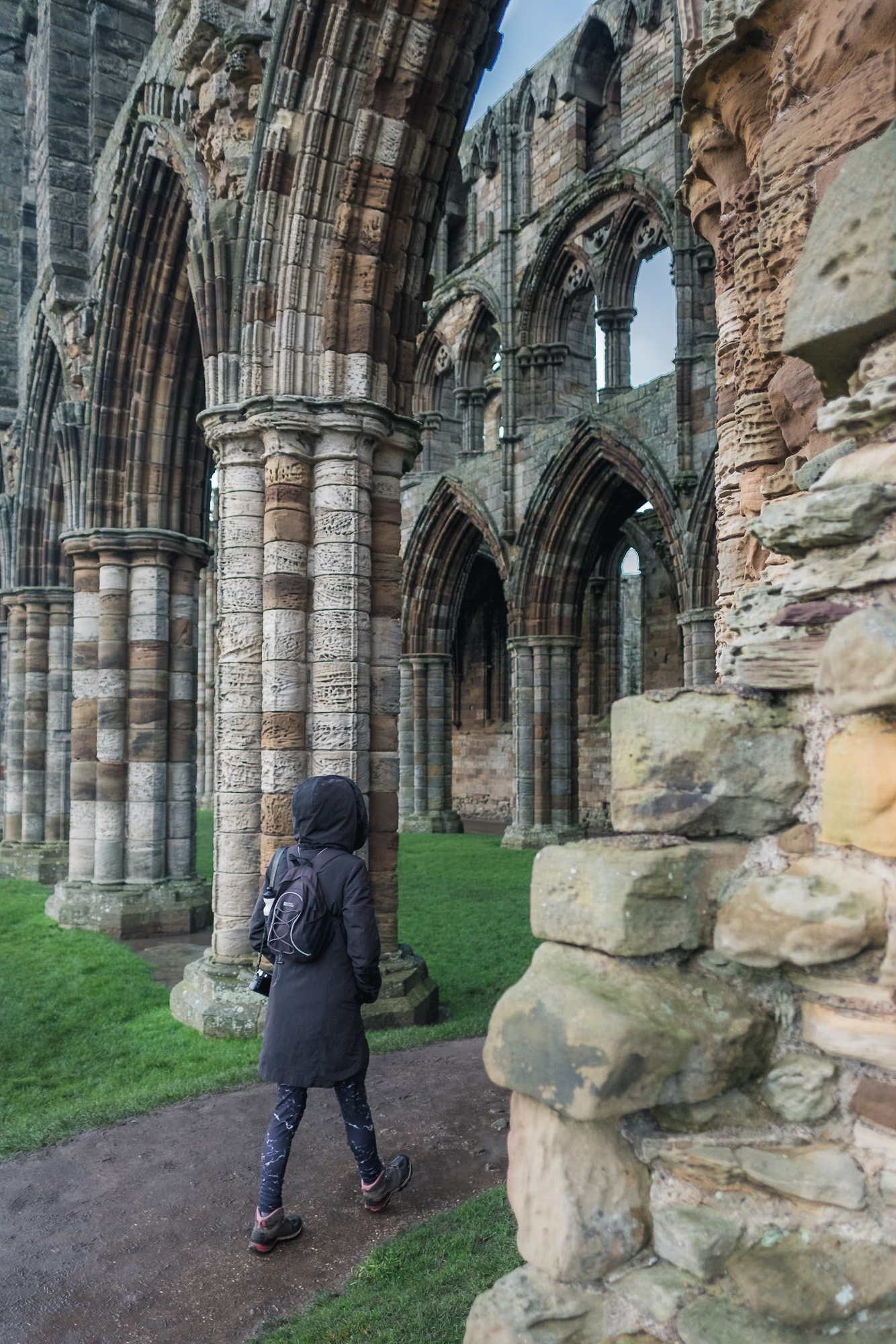 Once you’ve eaten and shopped your way around town, head up the famous (and steep) 199 steps to the Church of St Mary – a pilgrimage site for literary fans as the Church is referenced in Bram Stoker’s novel Dracula. For us, the main attraction was a little further on at Whitby Abbey. This 7th century ruined monastery inspired Stoker’s tale, and visiting here it’s easy to see why. The Gothic architecture creates ominous shadows and invites exploration into its rich history. Tickets for Whitby Abbey are available to buy in advance for a cheaper rate, and give visitors access to the museum where you’ll learn more about the history of the Abbey as a monastery, view artefacts discovered on site, and see the progression of the Abbey though time. We’d highly recommend visiting around sunset to see the Abbey in all its dramatic glory, the stark silhouette of the Gothic ruins adding to the eerie atmosphere at dusk.