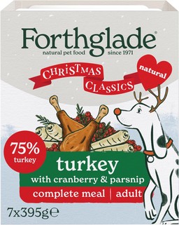 Forthglade also have a Christmas turkey wet food, made with turkey, cranberry and parsnip. This food is high quality with a 75% turkey content, and a grain-free recipe making it easier for dogs to digest. No post-Christmas-lunch belly for your pooch!