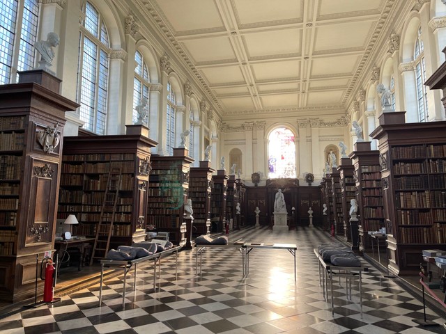 For a small glimpse into Cambridge’s prestigious colleges without the charge, the Wren Library is located at the back of Trinity College and is always free to visit. While the library does not get a festive makeover, it’s a good stopping point if you need to come in from the cold, and there are many notable books on display. Here you’ll find Isaac Newton’s notebook, A. A. Milne’s manuscript of Winnie-the-Pooh, and handwritten notes by Robert Oppenheimer describing atomic bomb tests in America. Visitors enter around the back of Trinity College, providing you with a scenic walk along the River Cam before you head inside.